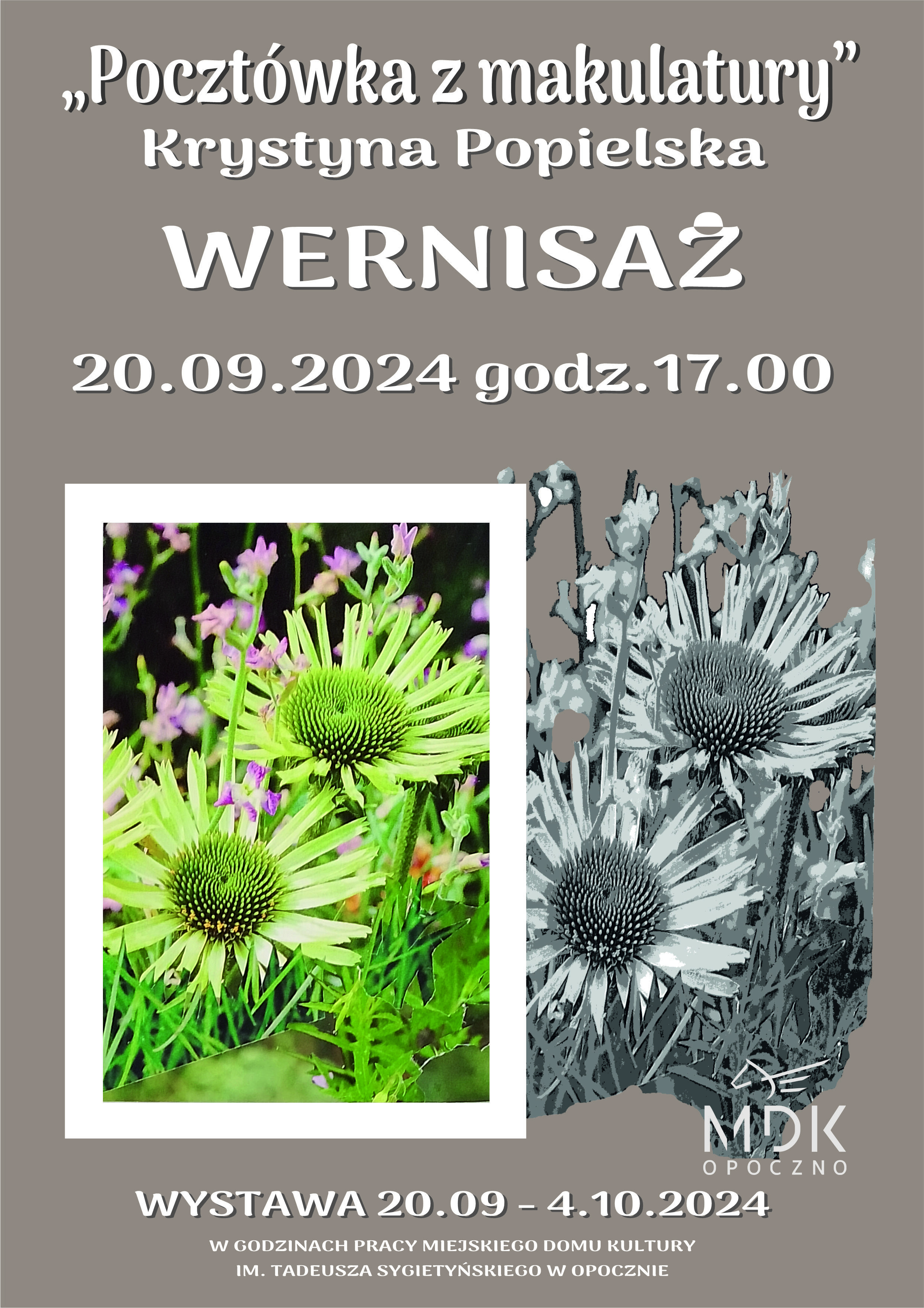 Wystawę otworzy wernisaż, który odbędzie się 20 września, o godz. 17.00 w MDK w Opocznie. Wstęp wolny. Serdecznie zapraszamy.