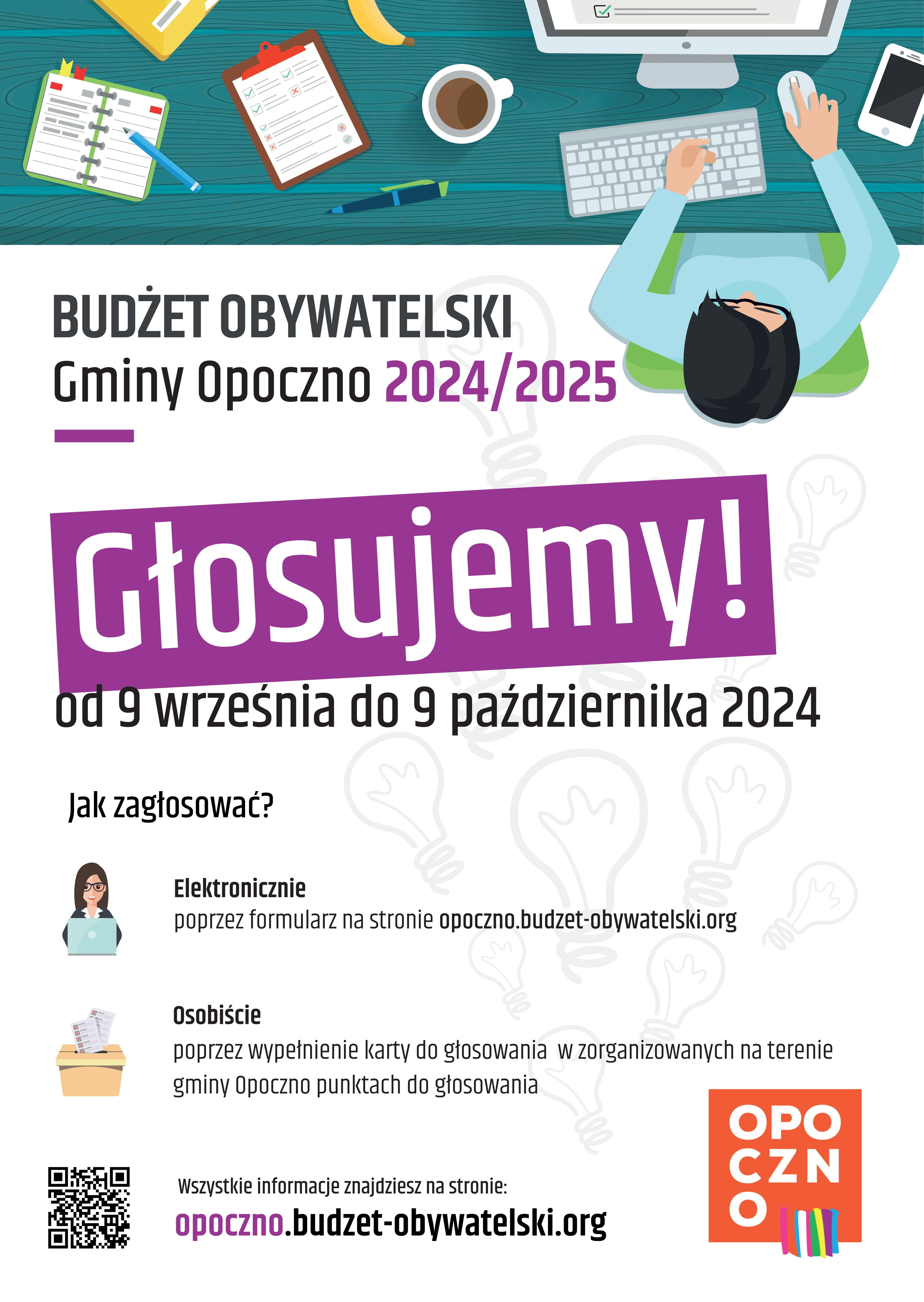elektronicznie – poprzez formularz dostępny na stronie dedykowanej Budżetowi Obywatelskiemu: opoczno.budzet-obywatelski.org To wygodna i szybka opcja dla osób, które chcą zagłosować online.