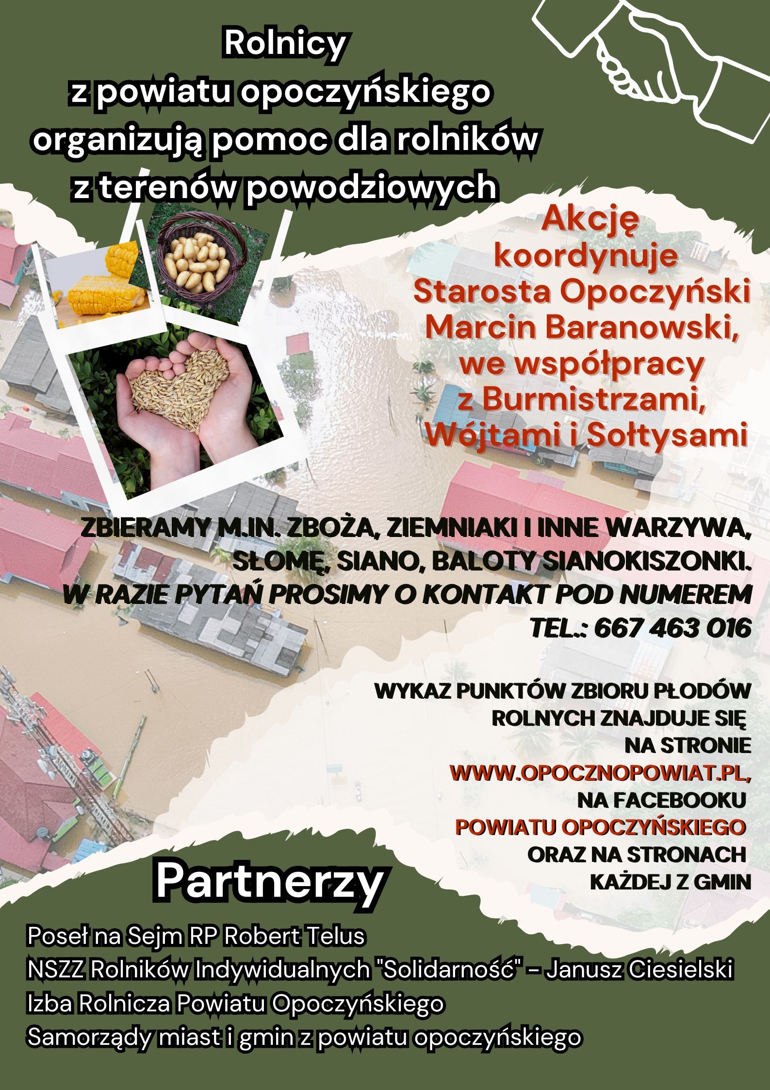 Przed dostarczeniem płodów rolnych do tych punktów prosimy o wcześniejszy kontakt telefoniczny. Szczegóły dotyczące punktów zbiorczych dla każdej z gmin znajdują się na stronie internetowej www.opocznopowiat.pl oraz na Facebooku: Powiat Opoczyński. Informacje będą na bieżąco aktualizowane.