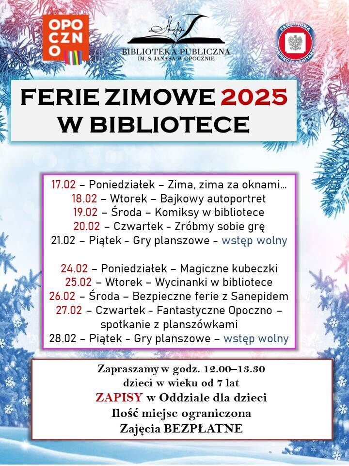 Szczegółowy harmonogram dostępny jest na stronie internetowej Biblioteki.
