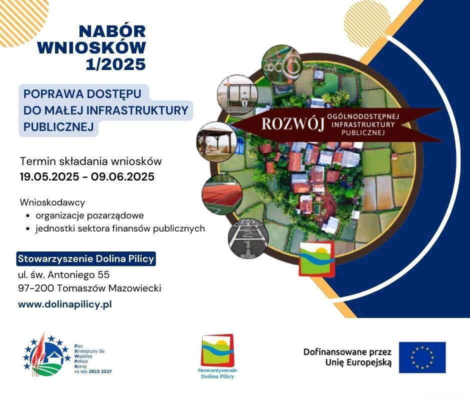 Szczegółowe warunki przyznania pomocy określa Regulamin naboru wniosków o przyznanie pomocy nr 1/2025 dostępny na stronie: https://dolinapilicy.pl/143/ogloszenie-o-naborze-12025-poprawa-dostepu-do-malej-infrastruktury-publicznej.html