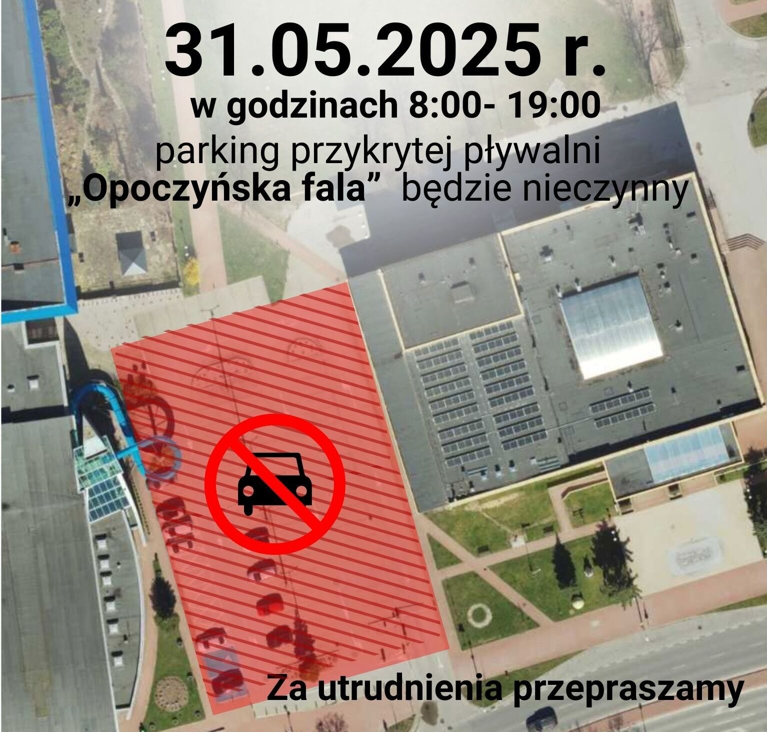 parking przy Krytej Pływalni „Opoczyńska Fala” będzie zamknięty w godzinach od 8:00 do 19:00.