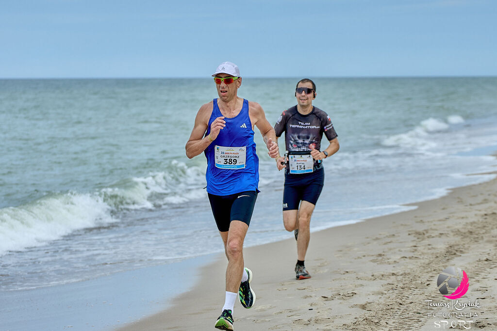 Start w samo południe. Początek, dość łagodny, choć żar z nieba nie ułatwiał zadania. Już po pierwszym kilometrze zaczęły się schody, długi podbieg sprawił, że oddech stał się cięższy, a kroki coraz bardziej świadome. Po 5 km biegacze wbiegli na plażę i wtedy zaczęła się prawdziwa walka. Najpierw twardy piasek, jeszcze pozwalający na rytm, ale później… piach, kamienie, fale obmywające nogi i grząskie odcinki, w których buty grzęzły po kostki. To był bieg, który testował nie tylko nogi, ale i głowę.