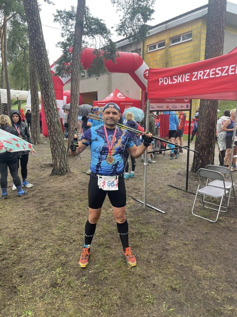 Deszcz, błoto i śliska trasa wymagały nie tylko kondycji, ale i stalowych nerwów. W tych trudnych warunkach Robert Szulc, reprezentujący Gminę Opoczno, pokazał prawdziwą klasę. Zajął 7. miejsce w klasyfikacji Open, a w kategorii wiekowej M50 sięgnął po srebro.