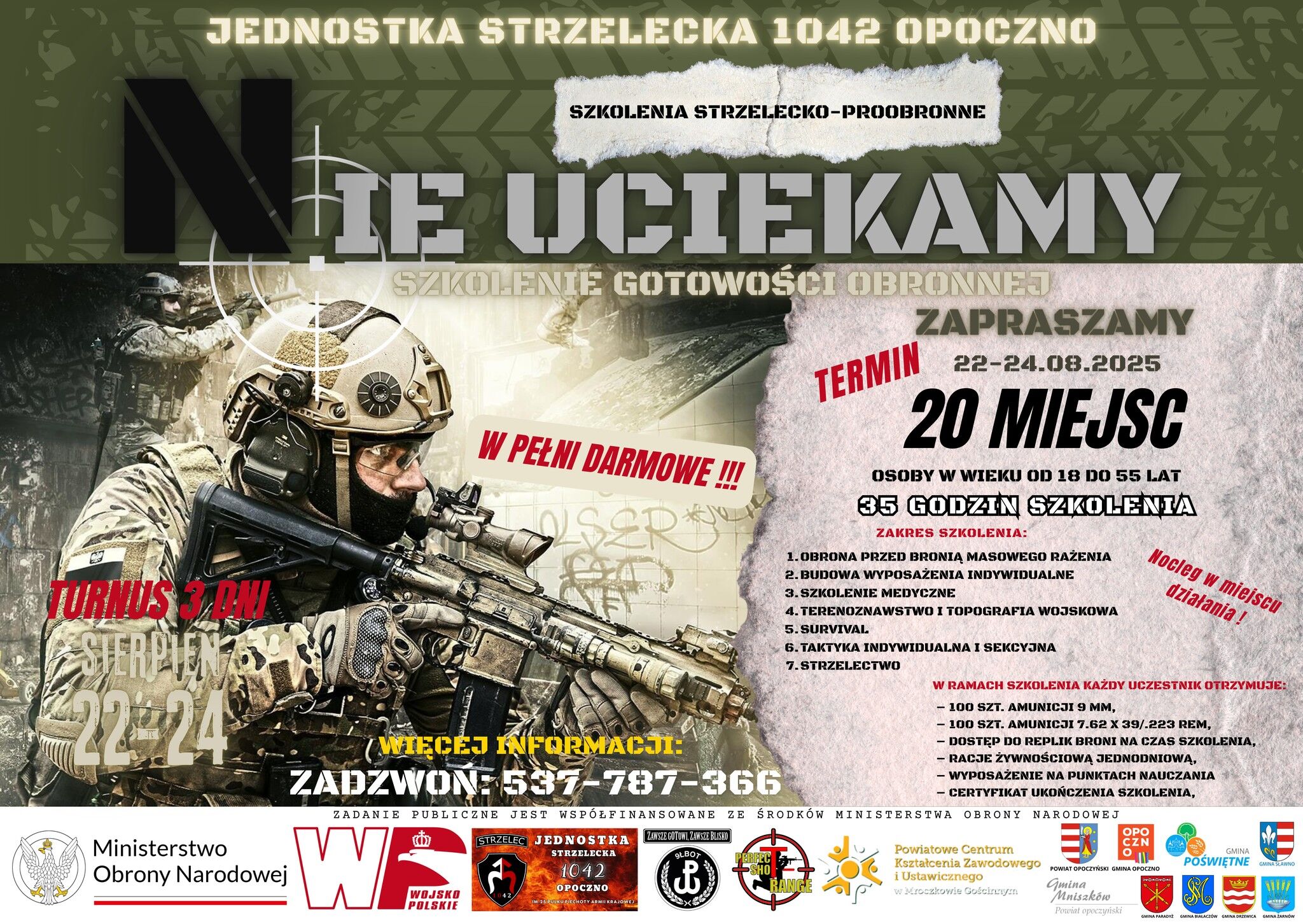 Szkolenie realizowane jest w ramach zadania publicznego „Nie uciekamy – szkolenie gotowości obronnej”, współfinansowanego przez Ministerstwo Obrony Narodowej.