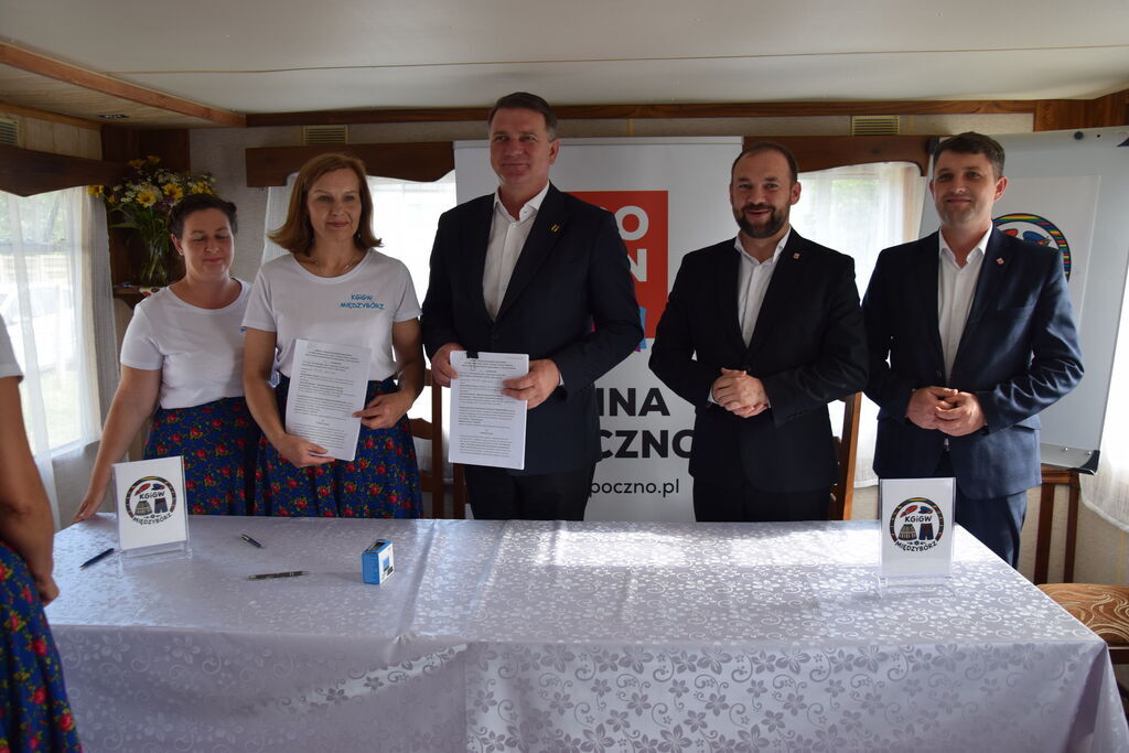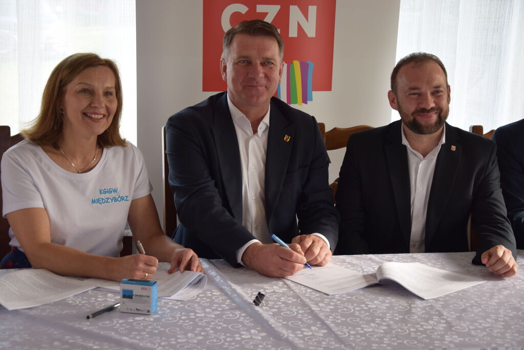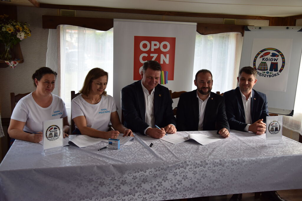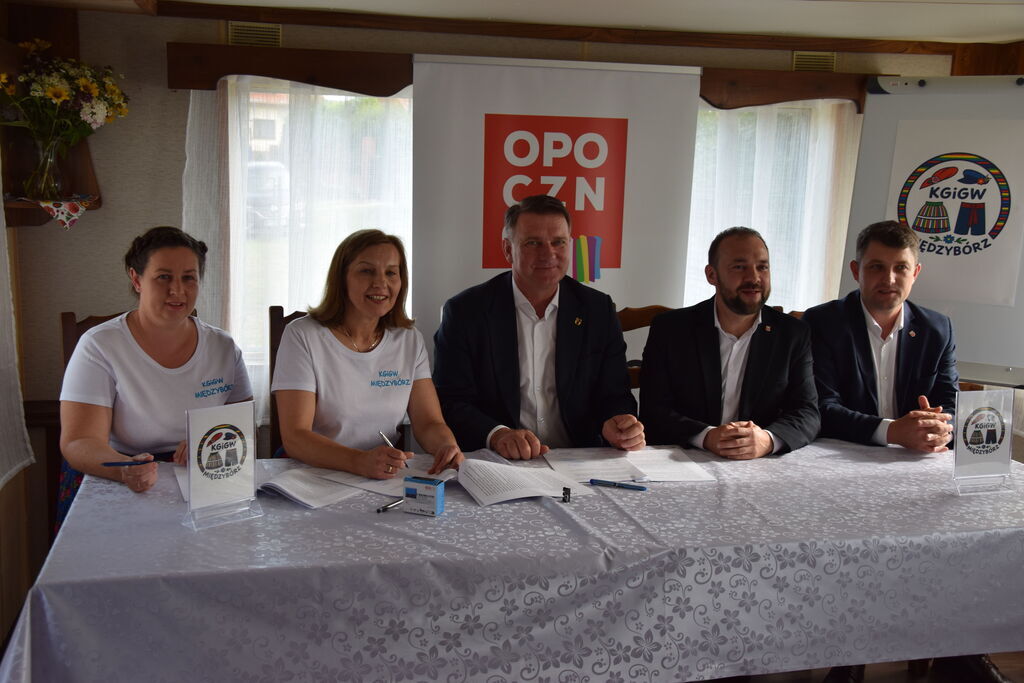 Urząd Marszałkowski Województwa Łódzkiego reprezentował Członek Zarządu Artur Bagieński. Ze strony KGiGW Międzybórz umowę podpisały: Przewodnicząca Koła Halina Rzońca oraz Skarbnik Koła Magdalena Pecyna. Przy podpisaniu umowy obecni byli również: Burmistrz Opoczna Michał Konecki, Zastępca Burmistrza Bartosz Milewski, Inspektor Wydziału Promocji i Kultury Urzędu Miejskiego Mariola Saternus, Sołtys Szczepan Michałowski oraz pozostali członkowie KGiGW Międzybórz.