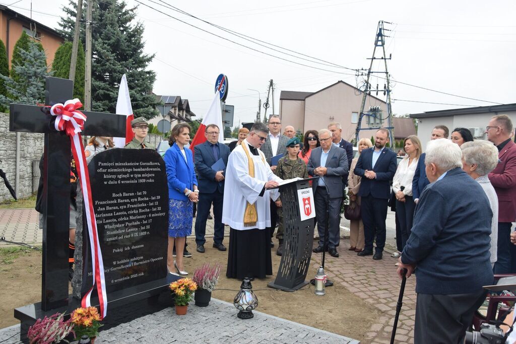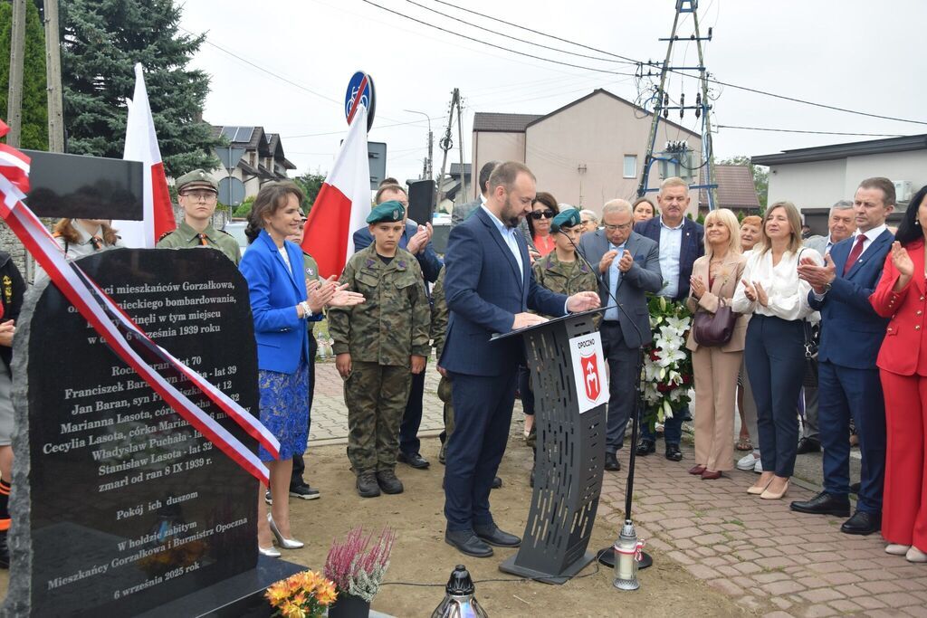 6 września 1939 roku bomby niemieckiej Luftwaffe spadły na domy mieszkańców Gorzałkowa, zabijając wielu niewinnych ludzi i niszcząc część infrastruktury kolejowej oraz zabudowę cywilną. Te wydarzenia głęboko zapisały się w historii Gorzałkowa i całej gminy Opoczno, a pamięć o ofiarach wciąż jest żywa w lokalnej społeczności. Do dziś żyje jedyny bezpośredni świadek tego bombardowania – pan Marian Lasota, którego wspomnienia zostały utrwalone przez Muzeum Regionalne w Opocznie. Jego obecność podczas uroczystości nadała wydarzeniu wyjątkowego charakteru, a fragment jego relacji został odczytany przez Lidię Lasotę, co jeszcze mocniej przybliżyło zgromadzonym dramat tamtych dni.