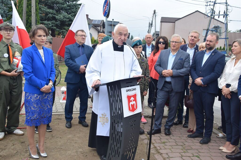 Tablicę poświęcił ks. dziekan Jan Serszyński, proboszcz parafii pw. św. Bartłomieja w Opocznie, zaś modlitwę za zmarłych poprowadził ks. Marcin Przytuła z parafii Podwyższenia Krzyża Świętego w Opocznie.