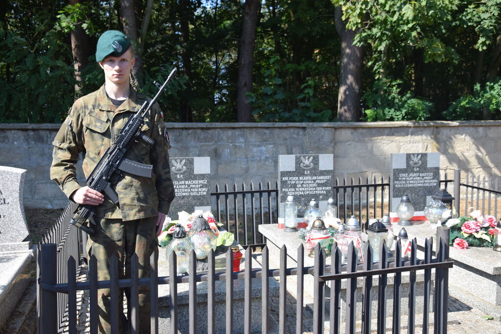 Następnie delegacje udały się na cmentarz parafialny w Kraśnicy, gdzie spoczywa kapral podchorąży Władysław Dawgiert. Jego ofiara na zawsze wpisała się w lokalną i ogólnonarodową historię. Przy jego grobie zapalono znicze i odmówiono modlitwę, składając hołd bohaterowi, którego odwaga i patriotyzm pozostają wzorem dla przyszłych pokoleń.