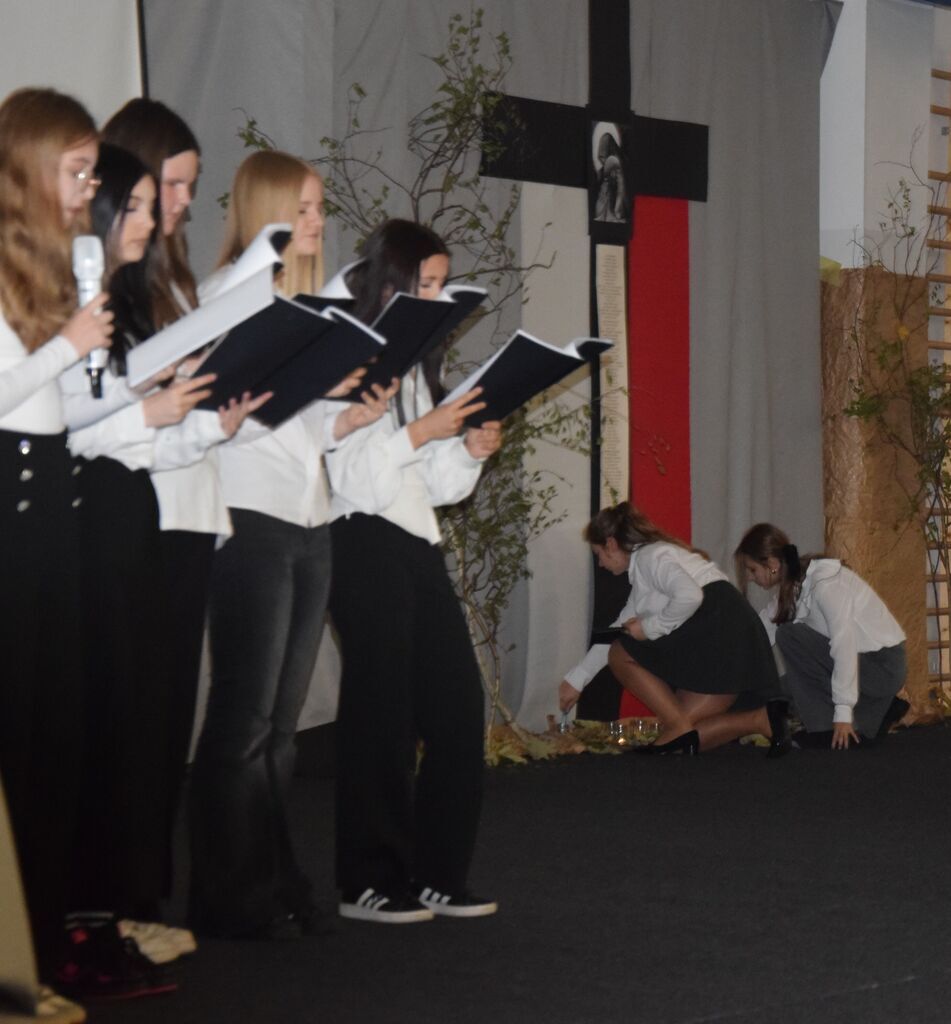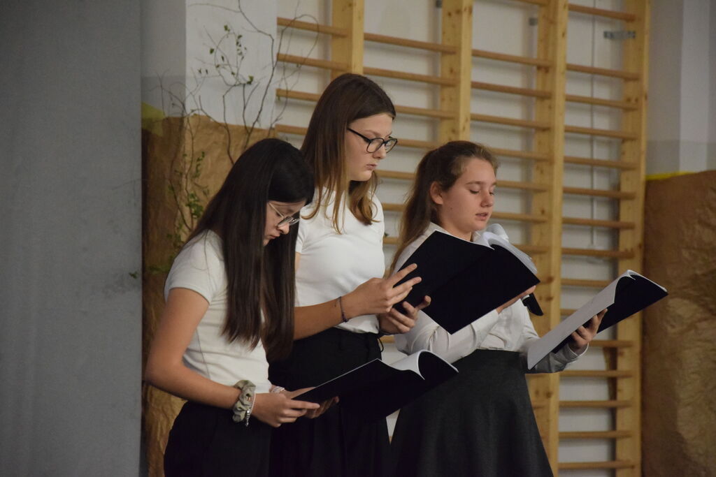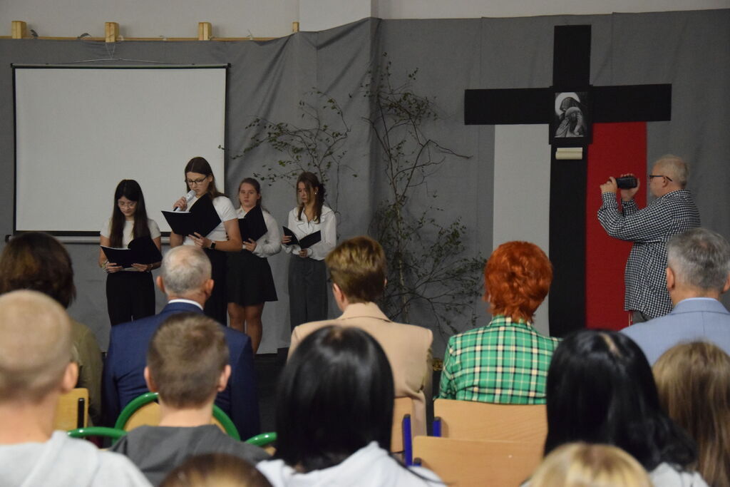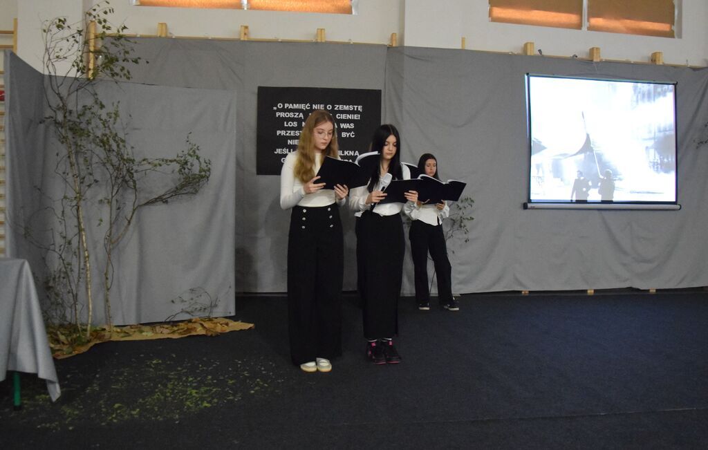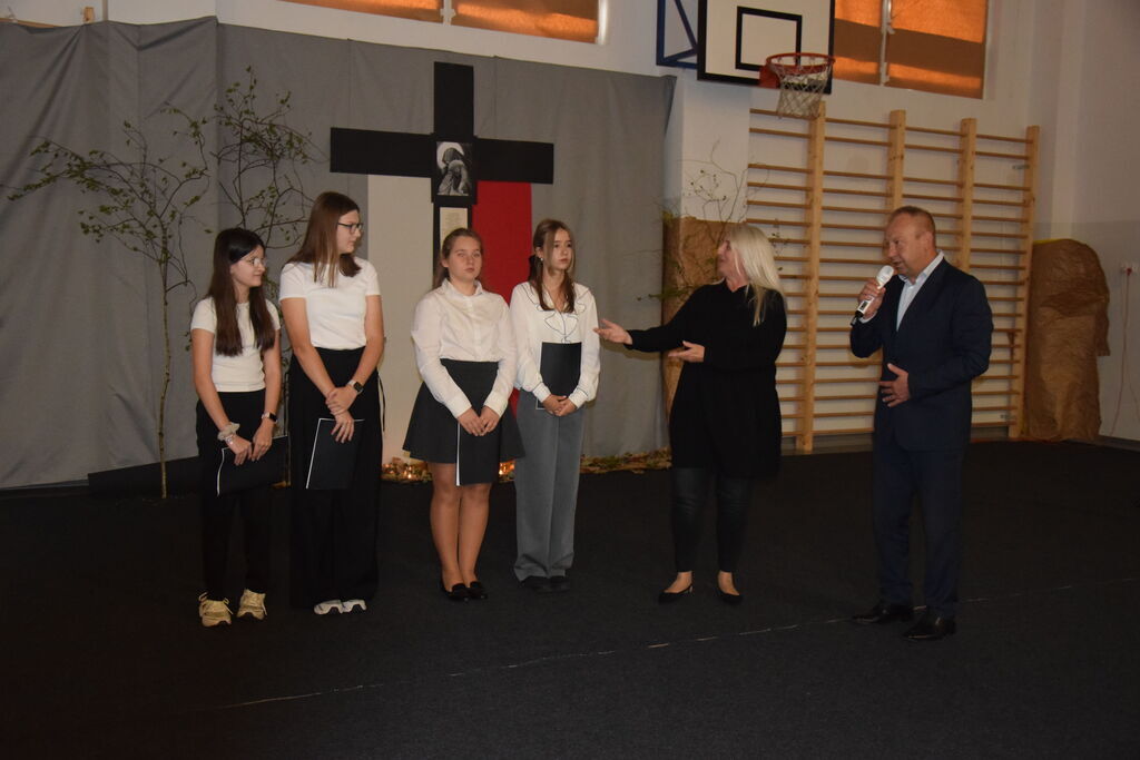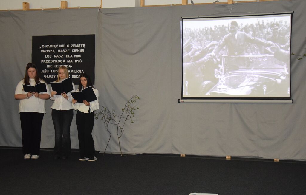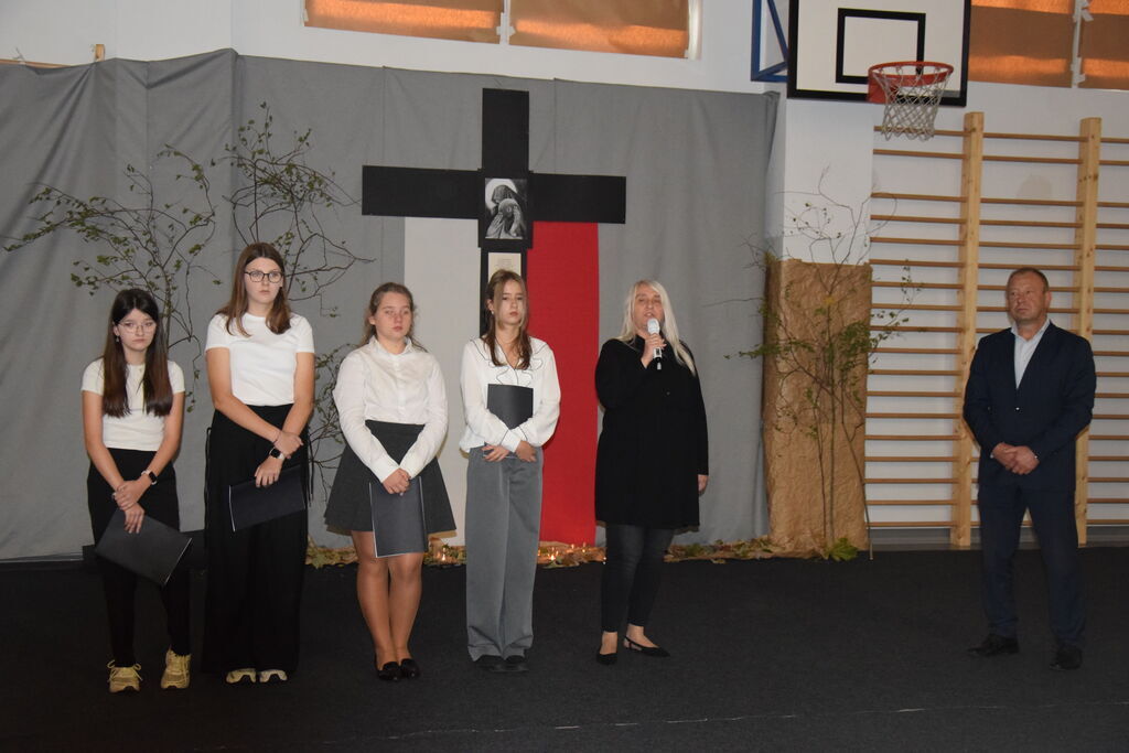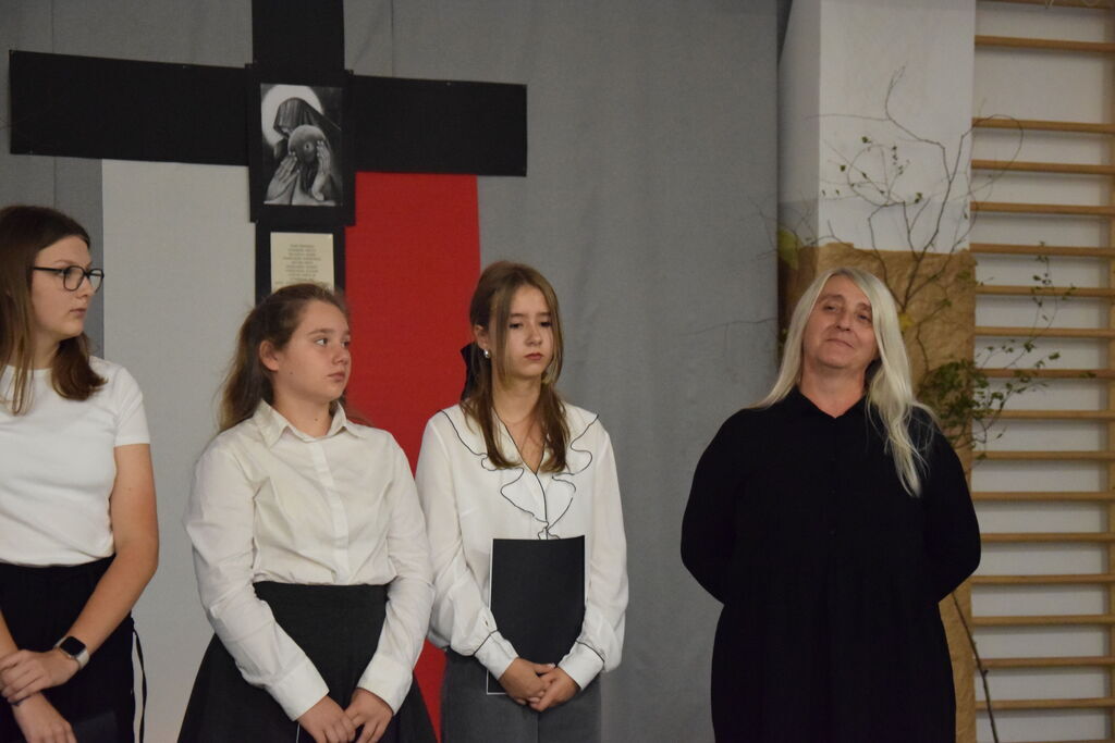 Montaż słowno–muzyczny przygotowała Beata Dacz, nauczycielka języka polskiego, której osobiste zaangażowanie nadało wydarzeniu szczególny wymiar. Pani Beata jest bowiem wnuczką jednej z 22 tysięcy ofiar zbrodni katyńskiej. W przygotowaniu inscenizacji wykorzystała materiały z Instytutu Pamięci Narodowej oraz własne, rodzinne zbiory, które posłużyły również do stworzenia towarzyszącej uroczystości wystawy.