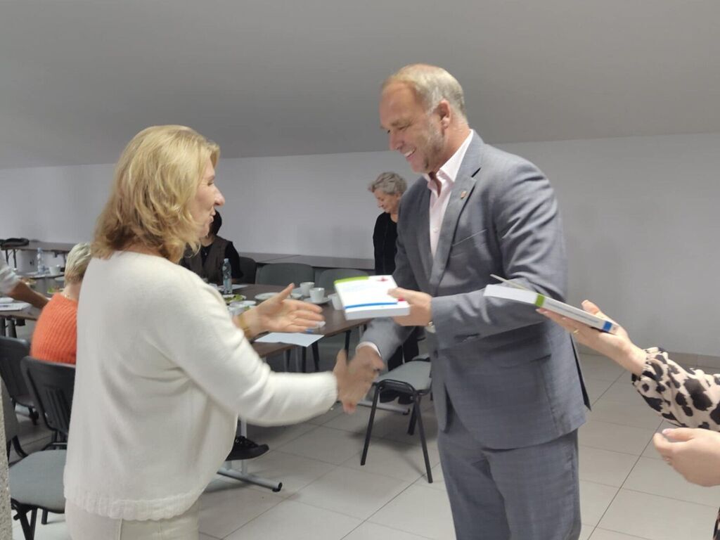 Spotkanie otworzyła Pani Natalia Marusik -Krzysztofik Dyrektor Wydziału Zdrowia i Spraw Społecznych, która przywitała uczestników i podkreśliła znaczenie troski o dobrostan psychiczny nauczycieli w codziennej pracy. W wydarzeniu uczestniczył również Zastępca Burmistrza Pan Jan Zięba, który wręczył uczestnikom książki zakupione w ramach zadania pn. „Przeciwdziałanie wypaleniu zawodowemu nauczycieli”. Upominki mają formę podziękowania i wyraz wdzięczności za zaangażowanie w niesieniu pomocy tym, którzy najbardziej jej potrzebują.