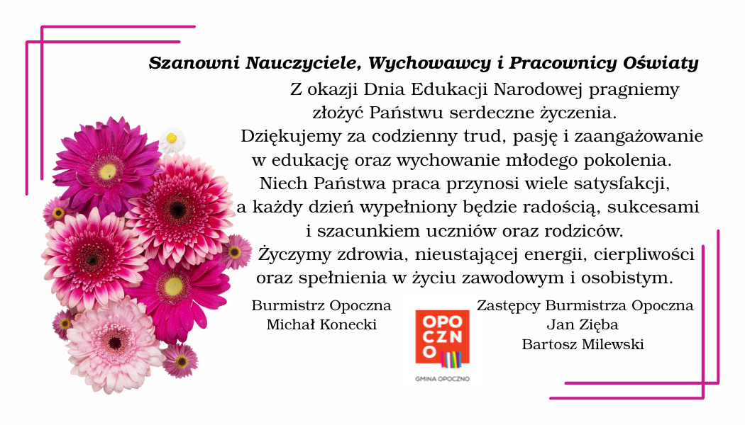 Szanowni Nauczyciele, Wychowawcy i Pracownicy Oświaty, z okazji Dnia Edukacji Narodowej pragniemy złożyć Państwu serdeczne życzenia.