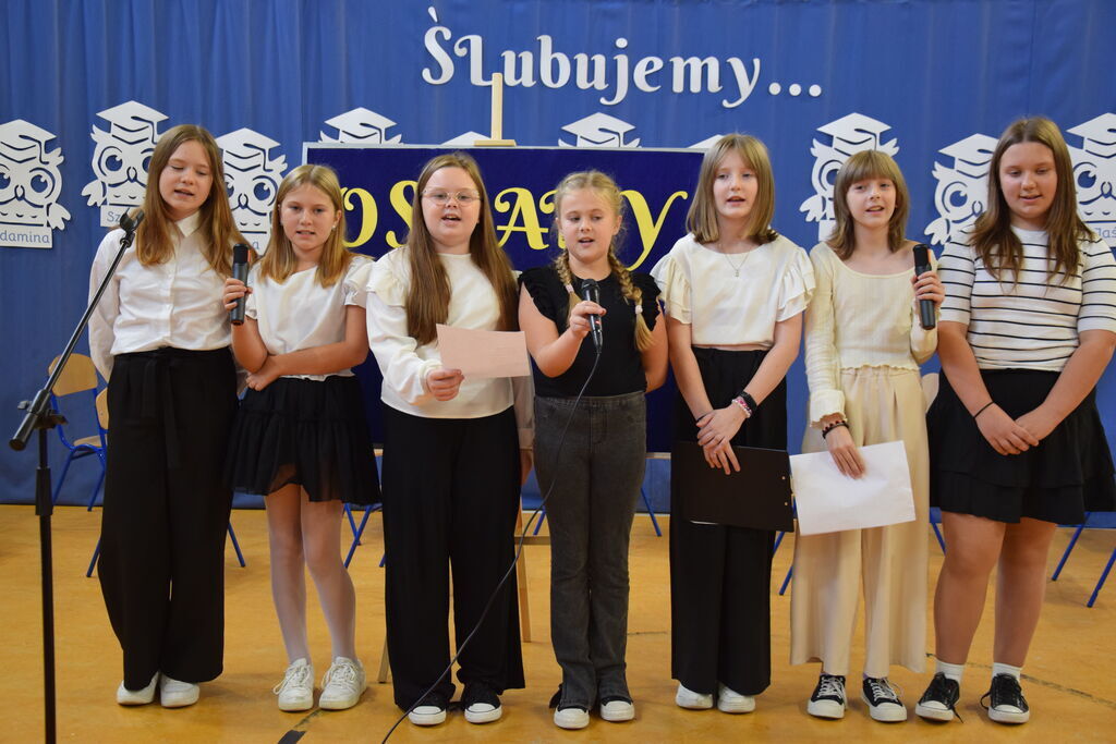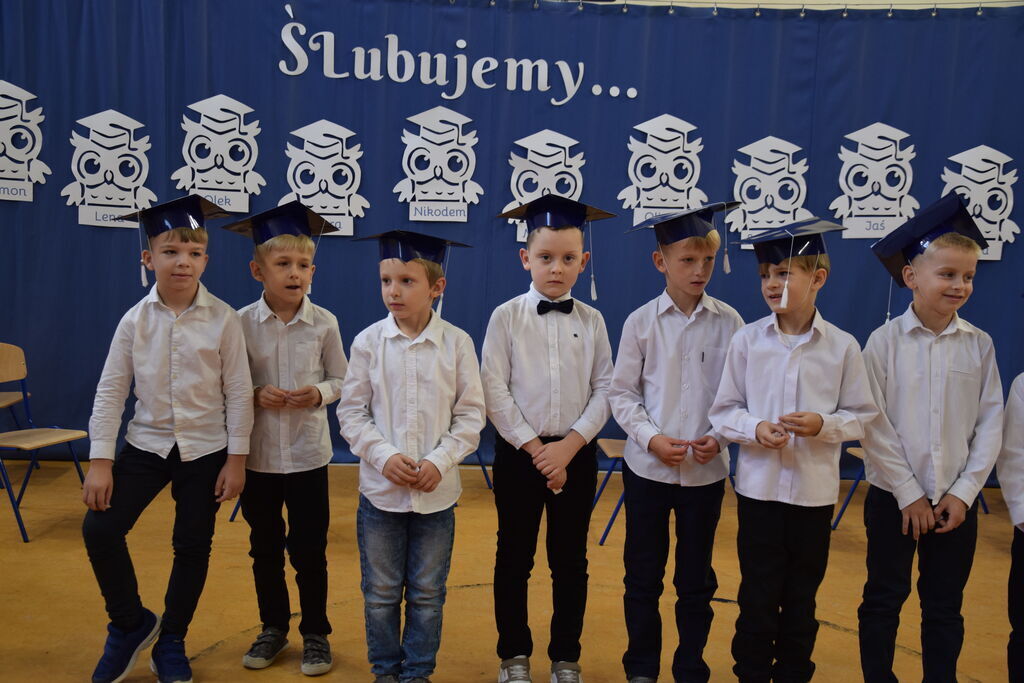 W obecności dyrektora szkoły Grzegorza Wołąkiewicza, wychowawczyni, grona pedagogicznego, rodziców oraz starszych kolegów, pierwszoklasiści z powagą, ale i widoczną radością wypowiedzieli uroczyste „ślubujemy”, zobowiązując się do pilnej nauki, dbania o dobre imię szkoły oraz szacunku wobec innych.