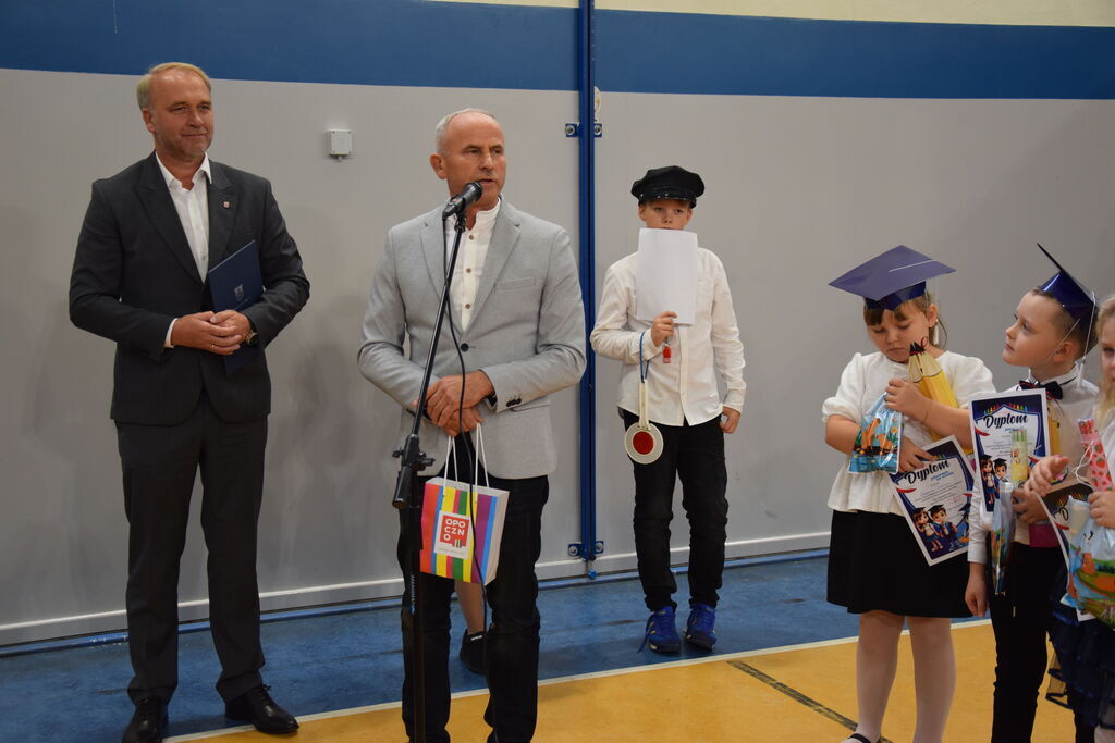 Uroczystość swoją obecnością zaszczycili przedstawiciele władz samorządowych: Zastępca Burmistrza Opoczna Jan Zięba oraz Wiceprzewodniczący Rady Miejskiej Wiesław Wołkiewicz. W swoich wystąpieniach podkreślili znaczenie tego typu wydarzeń dla integracji społeczności szkolnej oraz wyrazili uznanie dla dyrekcji, nauczycieli i rodziców za troskę o harmonijny rozwój najmłodszych. Złożyli również gratulacje w imieniu Burmistrza Michała Koneckiego oraz wręczyli dzieciom słodki upominek.