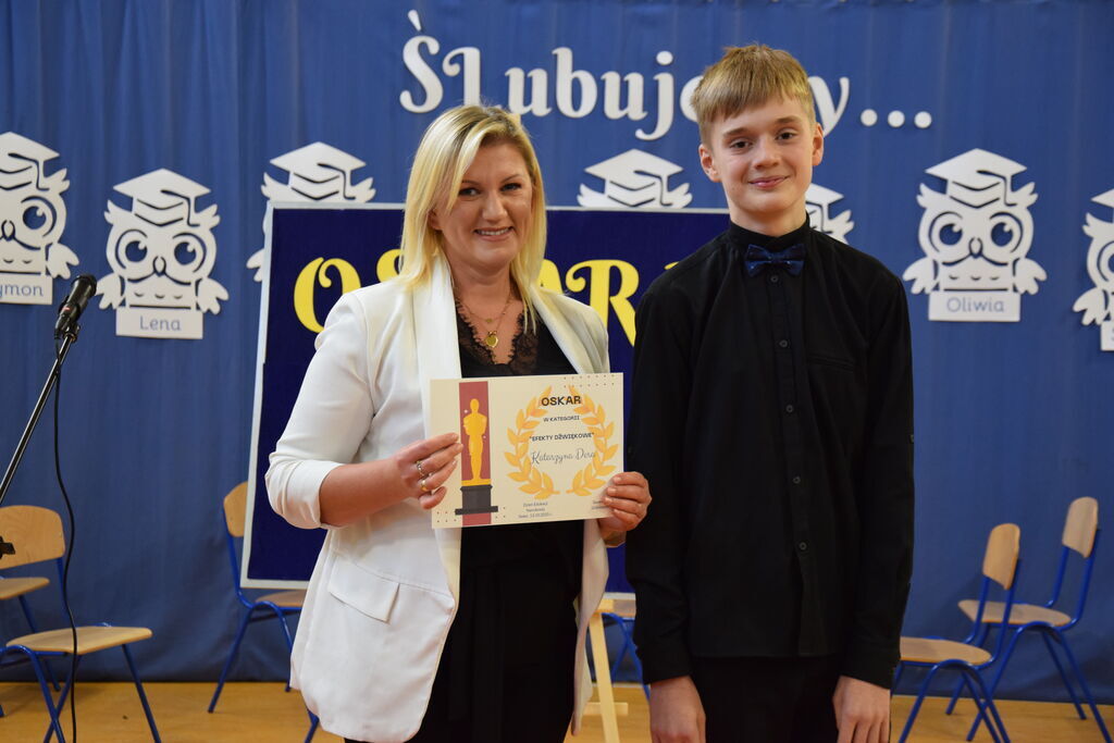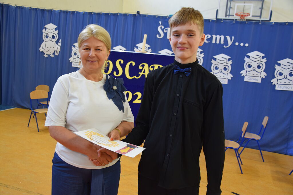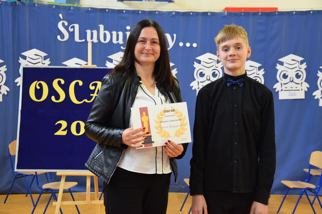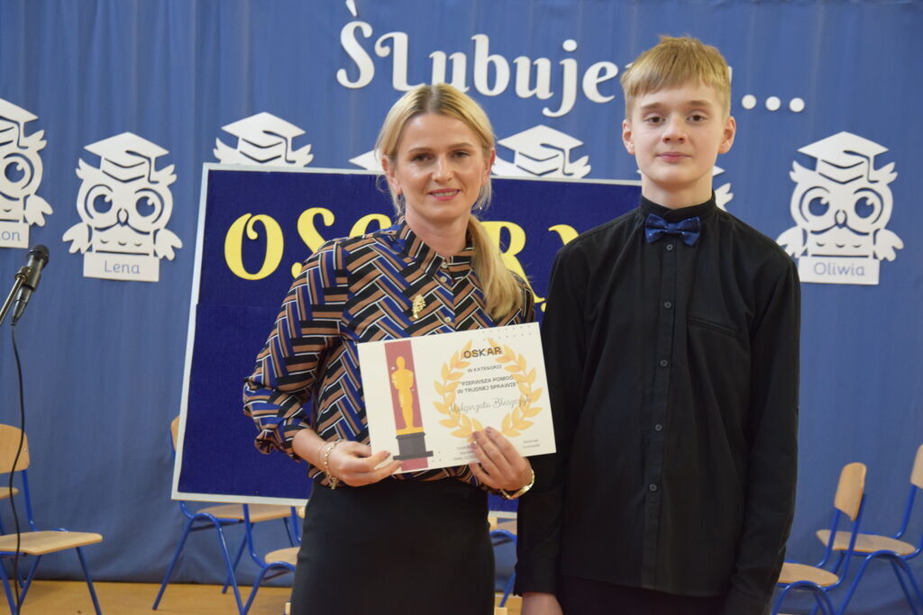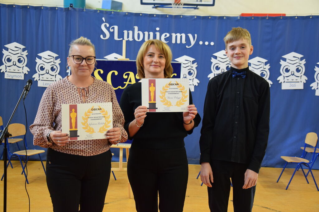 Pasowanie stało się także okazją do sympatycznego gestu ze strony uczniów starszych klas, którzy – w żartobliwy, ale pełen serdeczności sposób – wyróżnili swoich nauczycieli, wręczając im pamiątkowe dyplomy uznania.
