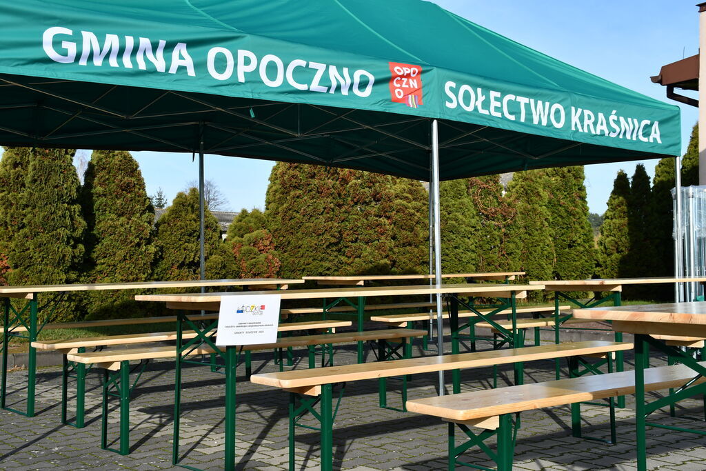 Przedsięwzięcie polegało na zakupie dwóch namiotów wystawowych wraz ze stołami i ławkami dla miejscowości Kraśnica. Zakup ten poprawi komfort spotkań organizowanych przez mieszkańców wsi Kraśnica, niezależnie od warunków atmosferycznych. Sołectwo nie posiadało jeszcze takich namiotów i zestawów biesiadnych, które można wykorzystywać w plenerze. Realizacja tego projektu spowoduje większą integrację między mieszkańcami, przyczyni się do promocji miejscowości Kraśnica w regionie.
