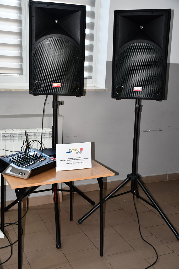 Wyżej wymienione zadanie pn. „Zakup namiotu, zestawów biesiadnych i sprzętu nagłaśniającego” zostało sfinansowane ze środków z dotacji z budżetu Województwa Łódzkiego w ramach pomocy finansowej jednostkom samorządu terytorialnego województwa łódzkiego w formie dotacji celowej przeznaczonej na realizację zadań własnych gminy w zakresie projektów w sołectwach „Granty sołeckie” na 2025 r. Wsparcie ze środków budżetu Samorządu Województwa Łódzkiego wyniosło 14 818,00 zł.