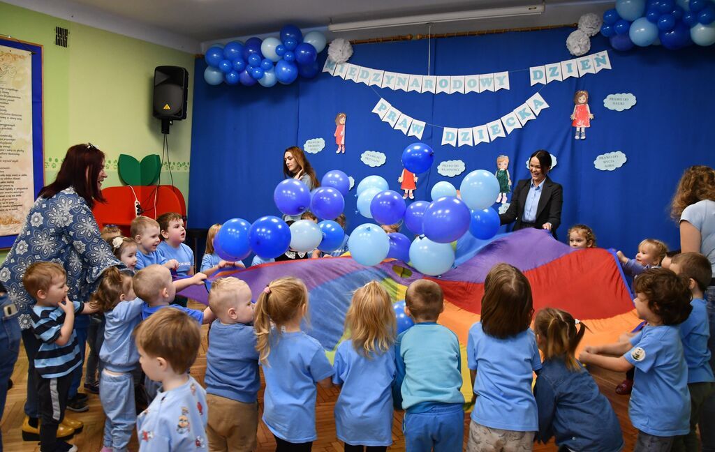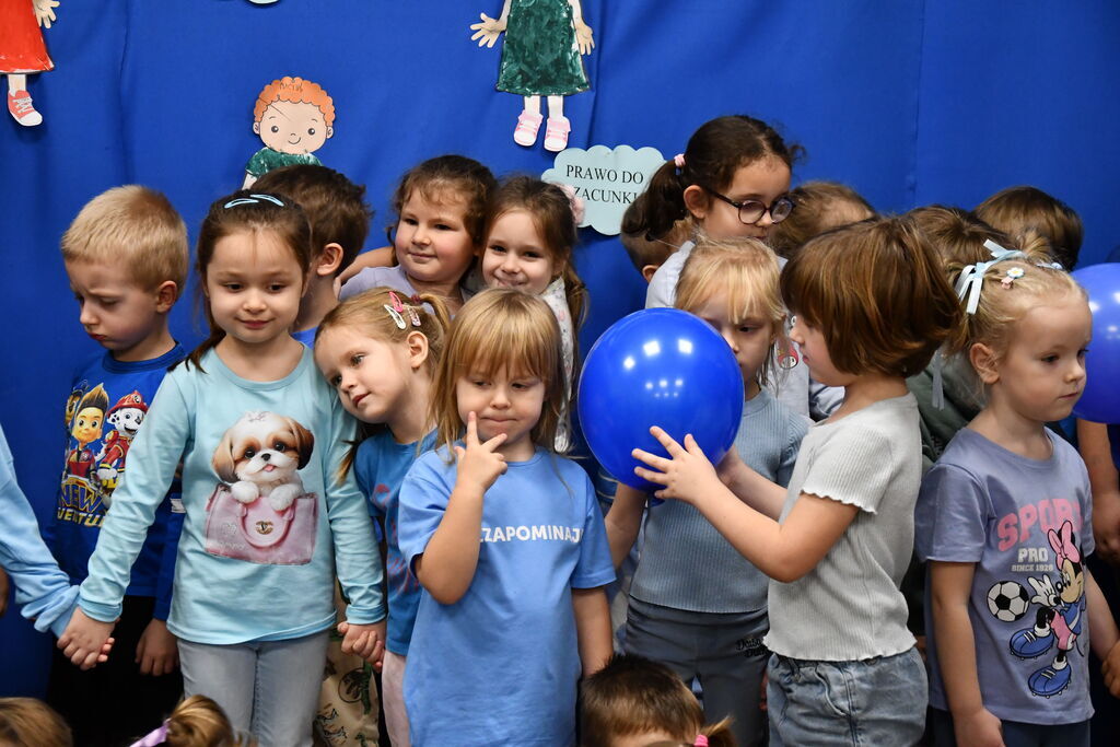 Na zakończenie wydarzenia dzieci wspólnie zatańczyły i zaśpiewały piosenkę o prawach dziecka, podrzucając niebieskie baloniki na kolorowej chuście animacyjnej. Zabawa w formie „fal oceanu” wywołała wiele uśmiechów - baloniki unosiły się i opadały, symbolizując radość, lekkość i dziecięcą energię. Kolor niebieski nie był przypadkowy, to barwa UNICEF, przypominająca o solidarności z dziećmi na całym świecie.