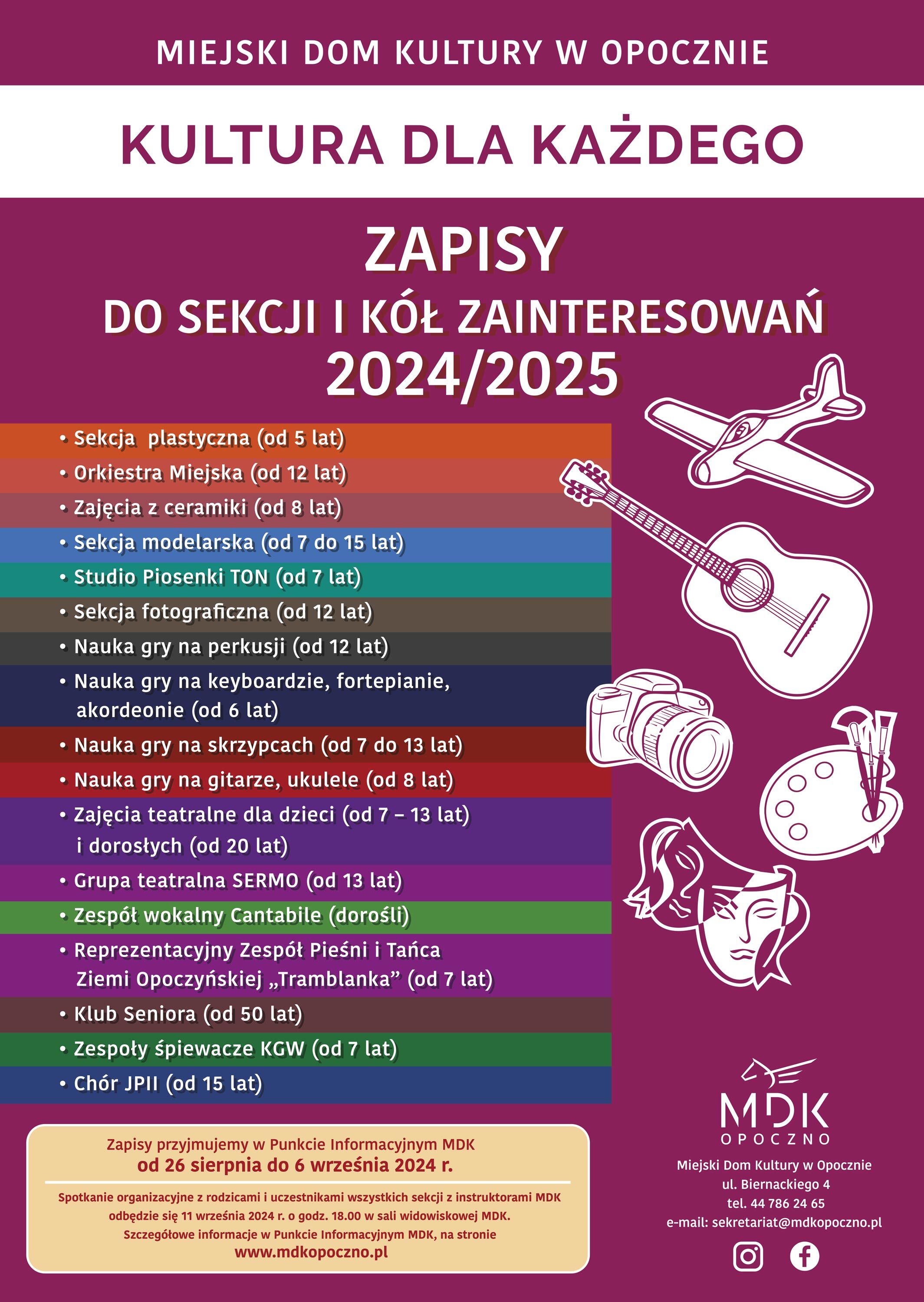 Szczegółowe informacje w Punkcie Informacyjnym MDK, na stronie www.mdkopoczno.pl i na Facebooku MDK.