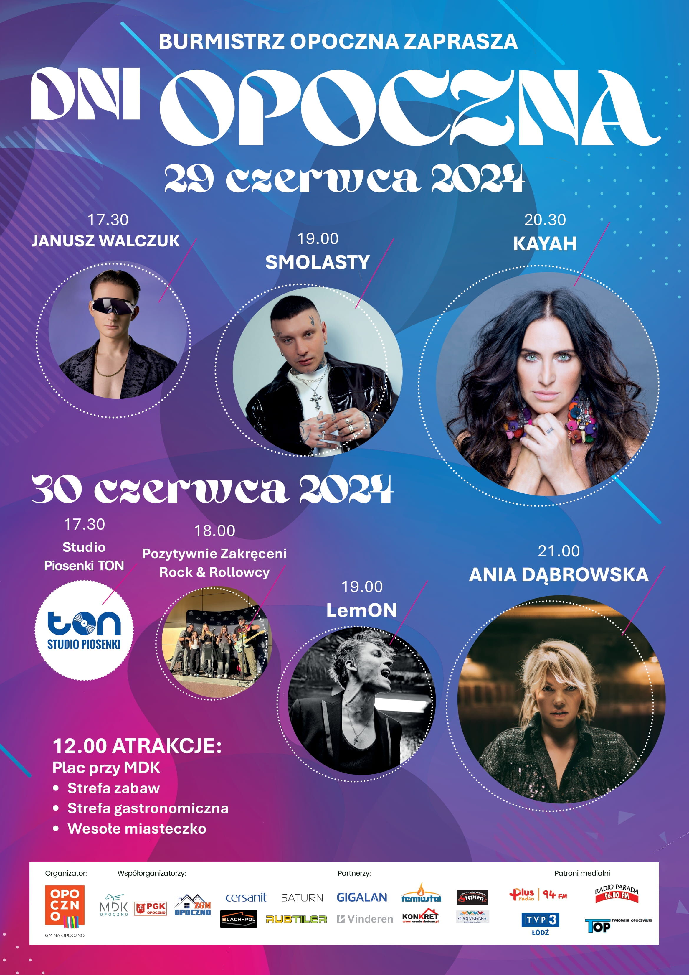 Nie przegap tegorocznych Dni Opoczna! To doskonała okazja, aby wspólnie cieszyć się muzyką, spotkać się ze znajomymi i spędzić czas w miłej atmosferze. Serdecznie zapraszamy do udziału w tym wyjątkowym wydarzeniu.
