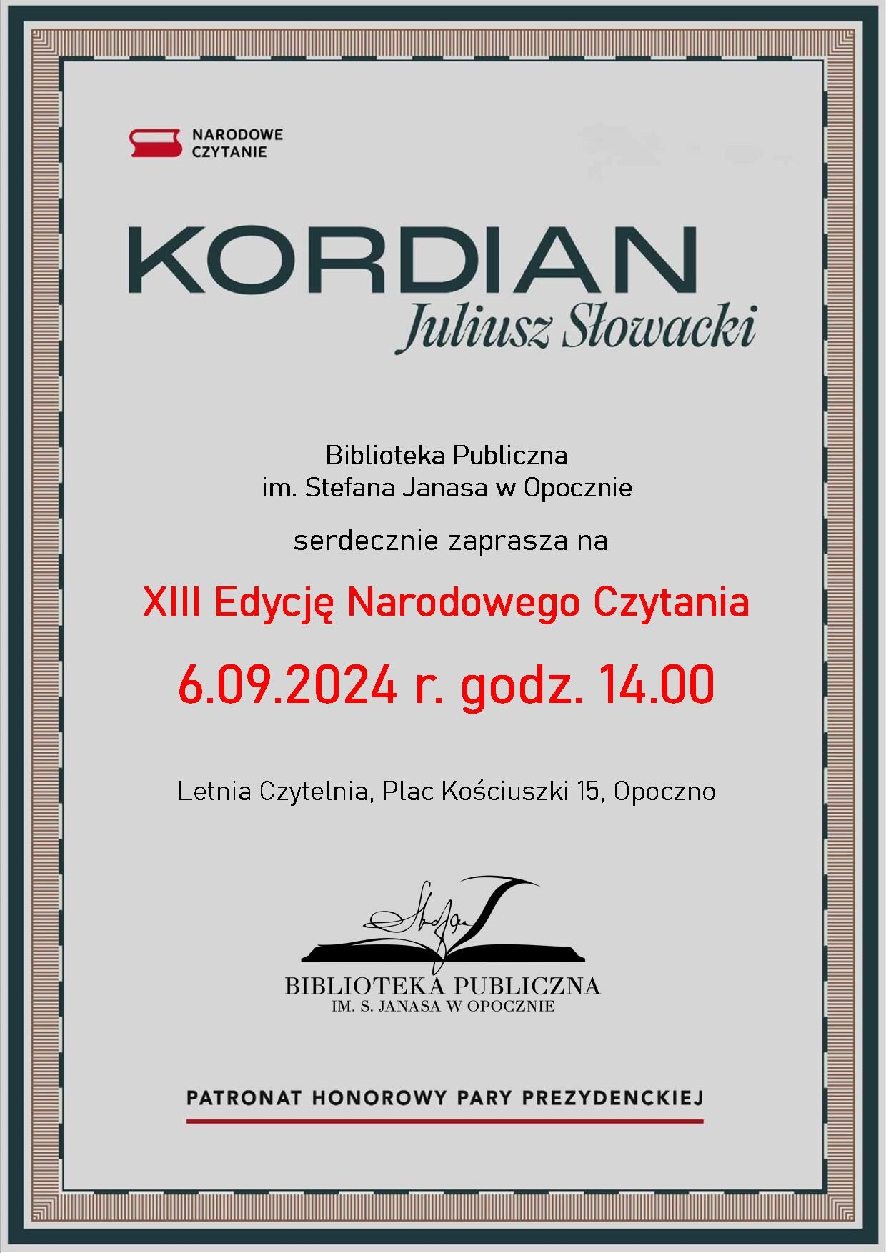 W tym roku wspólnie przeczytamy jedno z najwybitniejszych dzieł polskiego romantyzmu – Kordiana Juliusza Słowackiego. To doskonała okazja, by wspólnie odkryć bogactwo polskiej literatury i głębsze znaczenia dzieła, które podejmuje temat walki o wolność i narodowe dylematy.