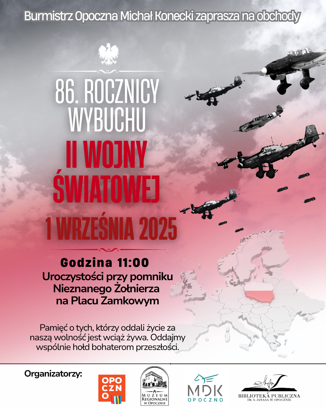 Wydarzenie odbędzie się 1 września 2025 roku o godzinie 11:00 przy Pomniku Nieznanego Żołnierza na Placu Zamkowym w Opocznie.