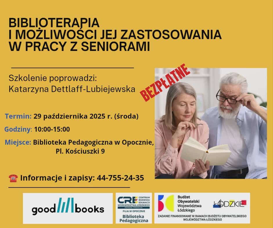Cel szkolenia: Poznanie praktycznych sposobów wykorzystania biblioterapii w pracy z seniorami, rozwijanie kompetencji w zakresie prowadzenia zajęć wspierających pamięć, emocje i integrację międzypokoleniową.