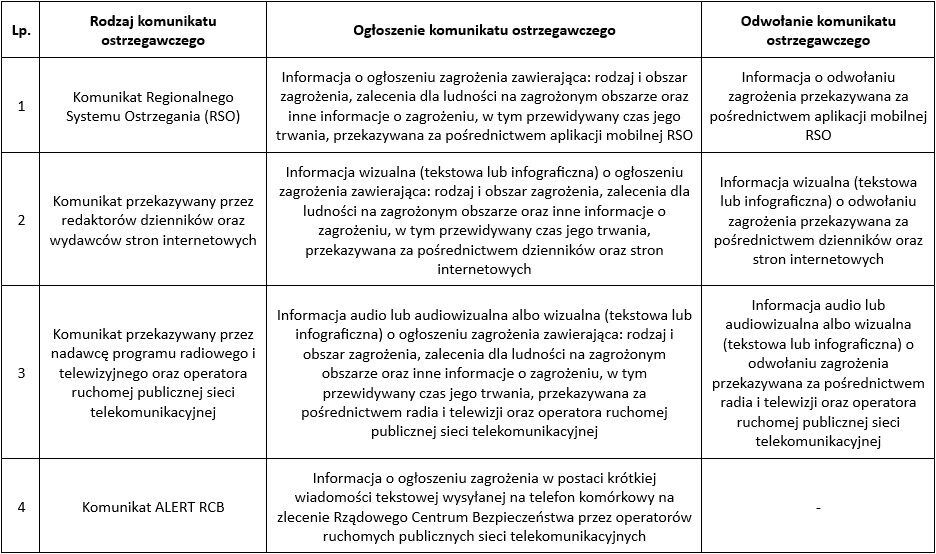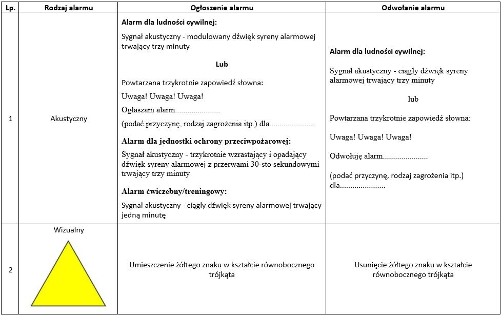 Sygnały alarmowe i komunikaty ostrzegawcze przedstawione w tabelach poniżej: